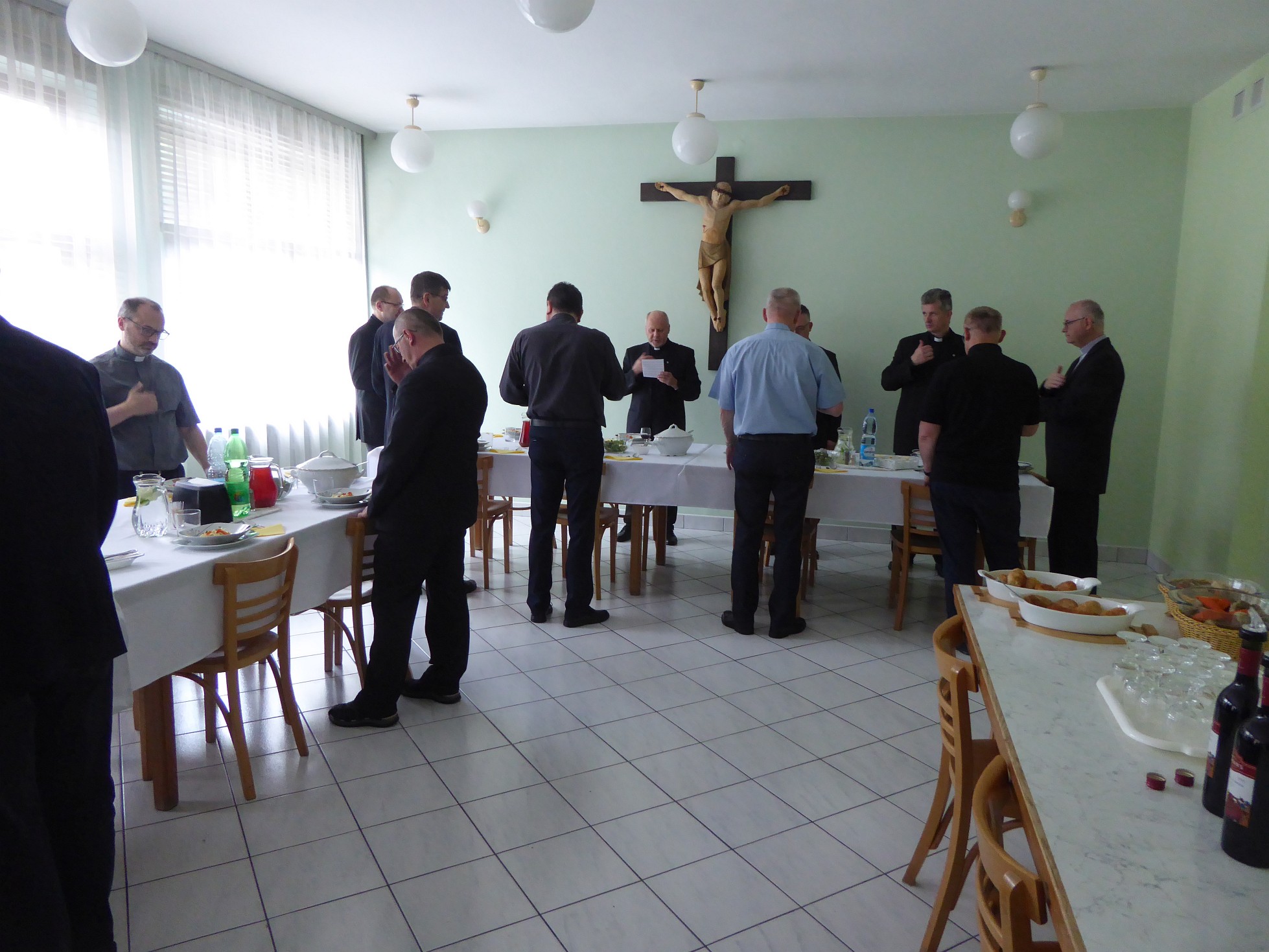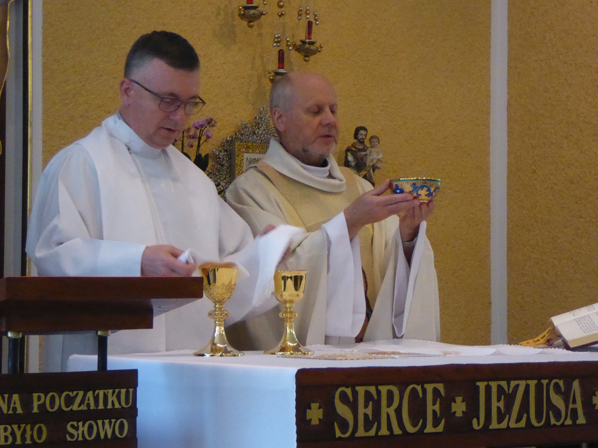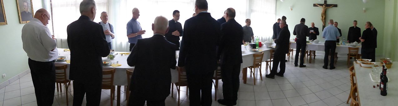 Po Mszy św. Solenizant podziękował za obecność i modlitwę życząc wszystkim błogosławieństwa Serca Bożego, po czym była okazja do życzeń wspólnych i osobistych. Ks. Knopik w życzeniach jeszcze raz odniósł się do wysiłku budowania świątyni. Podkreślił tę cechę księdza Prowincjała bycia „normalnym” współbratem zajmującym się najzwyklej codziennymi i prostymi zajęciami jak sprzątanie czy wyrzucanie śmieci. Czym daje wszystkim dobry przykład. W swoich życzeniach użył również słowa św. Jana Pawła II o kapłaństwie: „Bardzo ważne, abyśmy my kapłani szczerze i wielkodusznie odpowiedzieli na powołanie do świętości, które bóg kieruje do wszystkich ochrzczonych. Droga do świętości wiedzie przede wszystkim przez modlitwę i nic nie zdoła jej zastąpić. Przebywając z Panem, stajemy się Jego przyjaciółmi, nasze spojrzenie przemienia się stopniowo w Jego spojrzenie, nasze serce upodabnia się do Jego Serca. (…) Kluczem do tajemnicy naszego kapłaństwa jest bez wątpienia Eucharystia. Dlatego odprawianie Mszy św. musi być dla każdego z nas centrum całego życia i najważniejszą chwilą każdego dnia.”