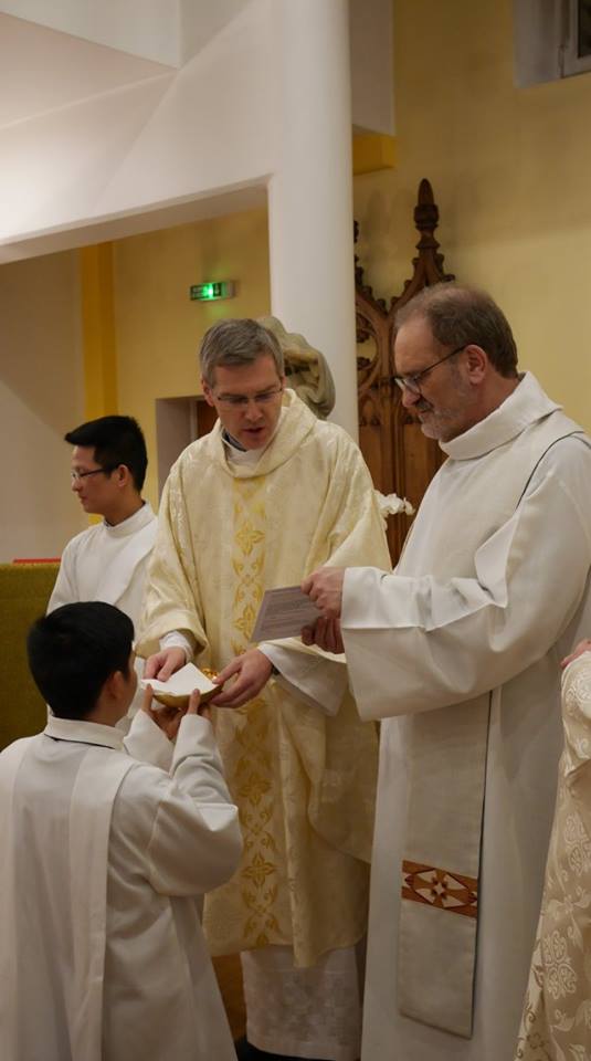 Podczas wieczornej Eucharystii w czwartek, we wspólnocie paryskiej, której przewodniczył przełożony generalny, współbracia mogli uczestniczyć we wprowadzeniu przez ks. Heinera posługę akolity i lektora kl. Wincentego Nguyena SCJ.