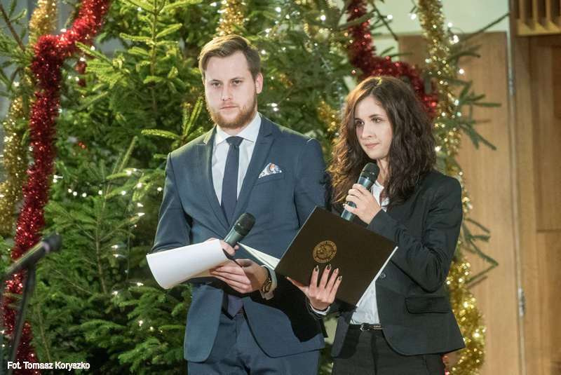 Z kolei ks. Rafał Sztejka, duszpasterz akademicki, odczytał fragment Ewangelii wg św. Łukasza, ukazujący okoliczności narodzin Syna Bożego. Ksiądz prof. Antoni Dębiński, rektor KUL, w wygłoszonym przemówieniu podsumował kończący się rok kalendarzowy, zwracając szczególną uwagę na osiągnięcia i sukcesy naszej Alma Mater. Gościom i całej społeczności akademickiej życzył błogosławionych Świąt Bożego Narodzenia i pełnego pokoju Nowego Roku 2018.