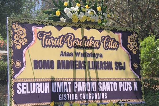 W poniedziałek 25 września o godz. 19.00 w Palembang w intencji zmarłego ks. Andrzeja Łukasika SCJ została odprawiona Msza św. żałobna, której przewodniczył biskup Palembang. We wtorek ciało śp. ks. Andrzeja zostało przewiezione do Pringsewu w prowincji Lampung, gdzie spędził on prawie całe swoje życie misyjne. Natomiast w środę 27 września o godz. 10.00 czasu indonezyjskiego Mszy św. pogrzebowej przewodniczył biskup Tanjungkarang Lampung.