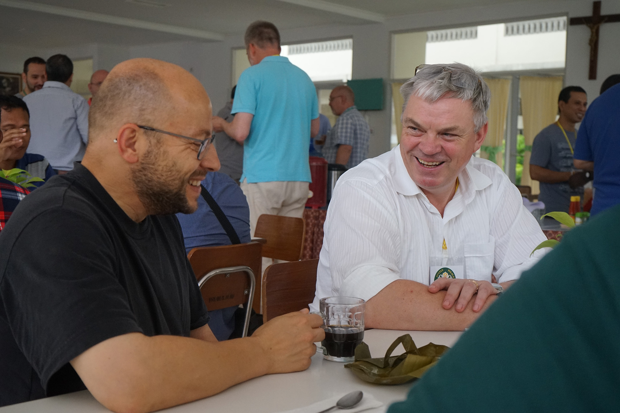 Ks. John van den Hengel SCJ i ks. Charles Brown SCJ z kontynentu północnoamerykańskiego (NA) otworzyli dzisiejsze seminarium wraz ze swoimi analizami. "Ludzie w Ameryce Północnej żyją pobożnością indywidualną podkreślając osobisty związek z Bogiem. Trudno jest stworzyć pobożność wspólną dla całej społeczności" - powiedział ks. John. Istnieje przeciwieństwo pobożności - bardziej duchowej natury - i religii. Ten kontrast można zaobserwować również w budownictwie społeczno-politycznym w Stanach Zjednoczonych, gdzie znajduje się oddzielenie kościoła i państwa. Ten rodzaj separacji może przynieść zarówno błogosławieństwo, jak i przekleństwo: ludzie mogą swobodnie praktykować swoje przekonania, podczas gdy same religie mogą być bardziej radykalne, a pobożności są jedynie ślepymi praktykami.