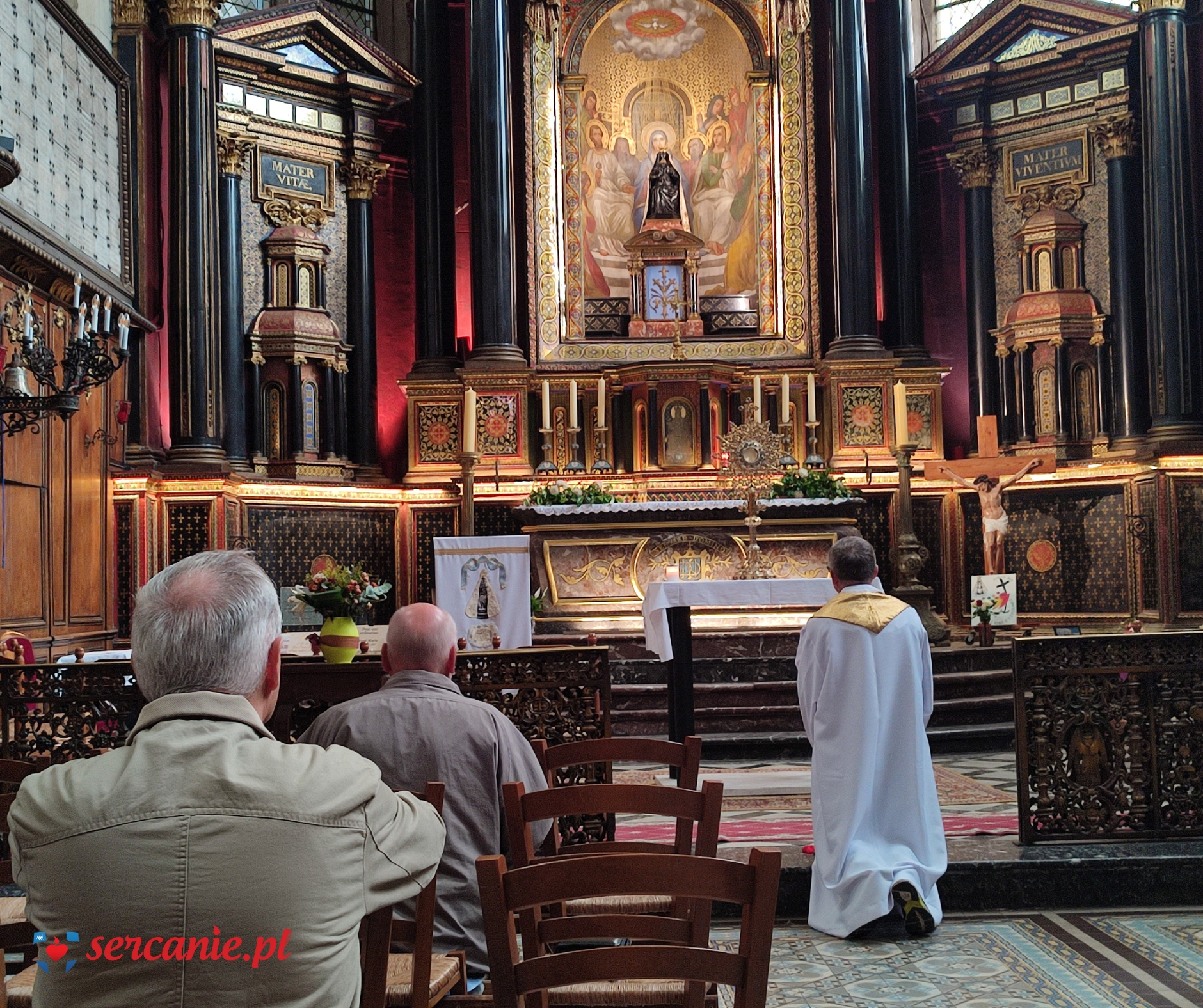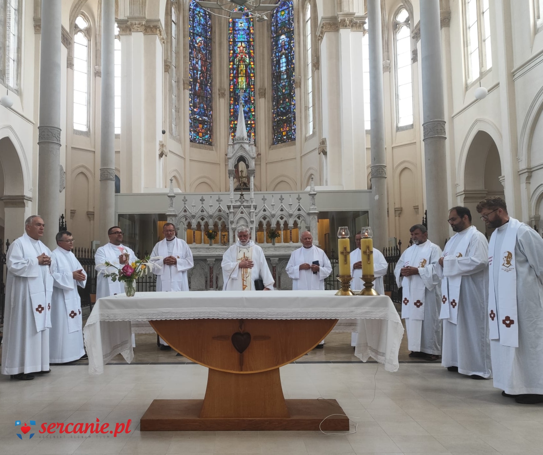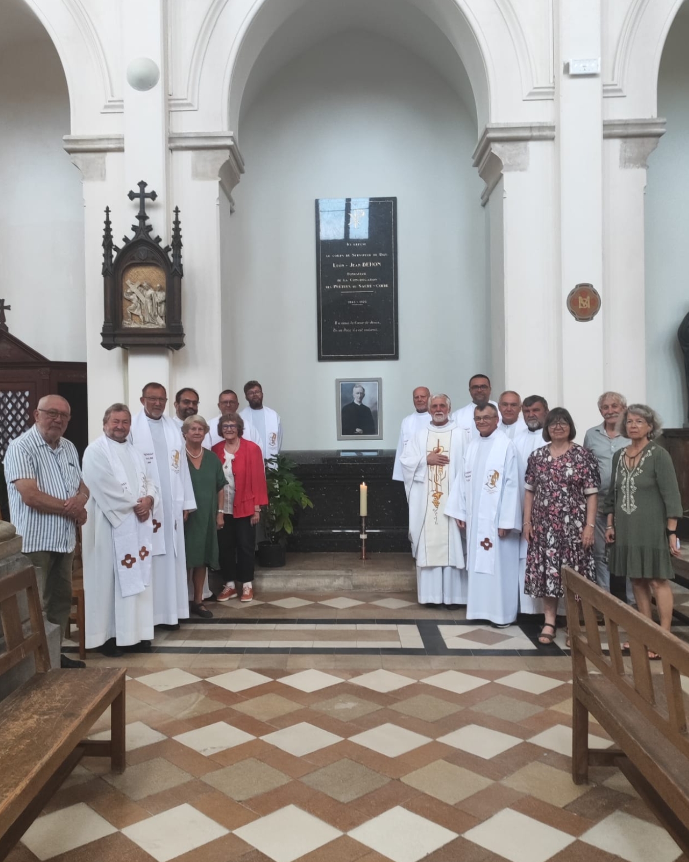 Ks. Wiesław przewodniczył Mszy Świętej, która rozpoczęła czwarty dzień pielgrzymowania, poświęcony refleksji nad naszym charyzmatem, przekazanym nam przez Założyciela. Dzień był wyjątkowo bogaty we wrażenia krajoznawcze, gdyż był próbą, by w ciągu ok. 12 godzin zobaczyć to, co najistotniejsze w Paryżu. Szybka kolejka zawiozła grupę pod odnowioną katedrę Notre-Dame, do której udało się wejść niejako z marszu. Odnowione mury zachwycały pięknem, czystością i dążeniem do zachowania tego, co nie przeminęło od 1163, kiedy to rozpoczęto jej budowę. Po opuszczeniu katedry, trasa zwiedzania prowadziła w kierunku budynków Sorbony, gdzie tajniki prawa poznawał młody Leon Dehon. Przechodząc w kierunku kościoła św. Sulpicjusza, parafii Założyciela z czasów studiów i jego paryskiego centrum duchowości, udało się zobaczyć budynek Panteonu i Ogrody Luksemburskie. Z kolei w kościele dawnego opactwa Saint-Germain-des-Prés, grupa modliła się przy grobie (zawierającym jednak jedynie serce) króla Jana Kazimierza, który tam był opatem komendatoryjnym po przybyciu do Francji. Przed obiadem udało się również nawiedzić sanktuarium objawień Cudownego Medalika z grobami śś. Ludwiki Marillac i Katarzyny Labouré. Krótka wizyta na placu Trocadéro ukazała piękną perspektywę wierzy Eiffla, po czym spacer po Polach Elizejskich między Łukiem Triumfalnym a Placem Zgody pozwolił obcować z jednym z najbardziej rozpoznawalnych fragmentów Paryża. Dzień zakończył się adoracją w Bazylice Najśw. Serca na paryskim wzgórzu męczenników (Montmartre), miejscu, które powstawało „na oczach” Założyciela i w którego konsekracji miał brać udział.
