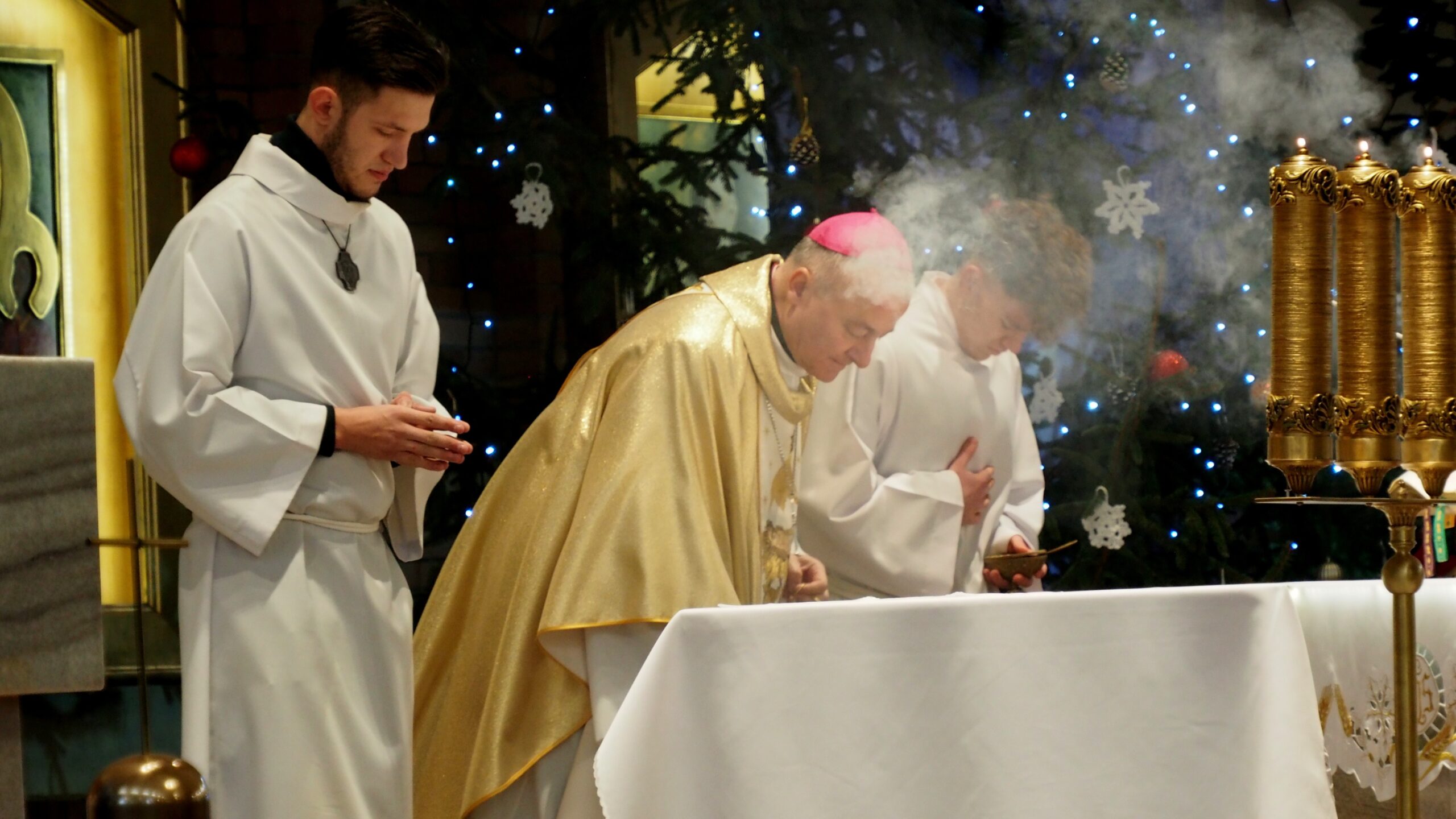 Biskup podkreślił, że witraż powstaje z kawałków – z fragmentów i pęknięć – a mimo to tworzy spójną całość. – Jeśli pozwolimy Panu Bogu być witrażystą, to On będzie nas składał – mówił, wskazując, że piękno nie rodzi się z idealnej gładkości, lecz z tego, co potłuczone, oddane w ręce Boga. Jak zaznaczył, człowiek czerpie pełnię z Chrystusa, który sam został „rozbity” na krzyżu, a jednak właśnie z tej ofiary rodzi się nowe życie.