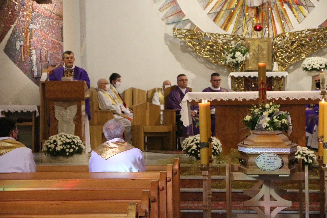 Uwielbiamy dziś Boga za życie i śmierć naszego współbrata, brata Paschalisa, który zakończył już swoją ziemską pielgrzymkę do domu Ojca. Brat Paschalis również uwielbił Boga swoim życiem, tak jak potrafił najlepiej, a ostatecznie uwielbił Go w tajemnicy swojej śmierci, tak jak Chrystus uwielbił Ojca oddając życie na krzyżu. W tym ostatnim tchnieniu br. Paschalis oddał Bogu w ofierze to, co miał najcenniejszego: swoje własne życie. A przeżył prawie 70 lat. W tych 70 latach jego czas się wypełnił.