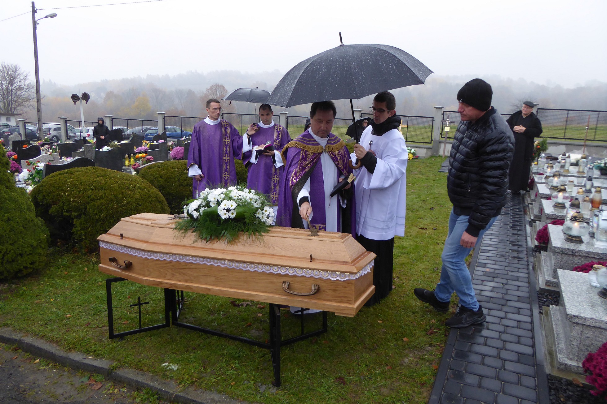 Po czym ciało śp. księdza Jan Kani zostało przewiezione na cmentarz i złożone w grobie. Jeszcze te ostatnie słowa wypowiedziane przez żegnającą go rodzinę: