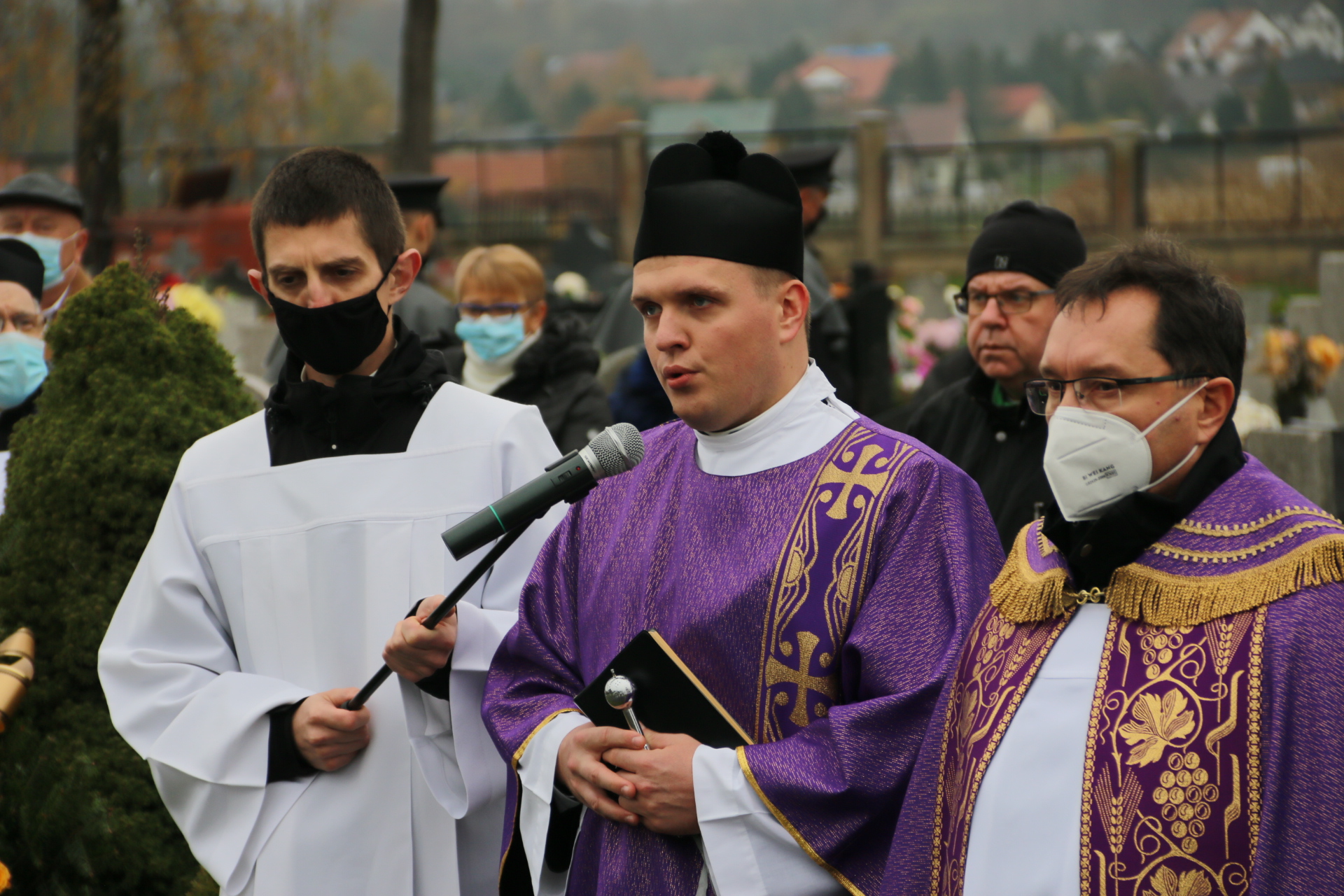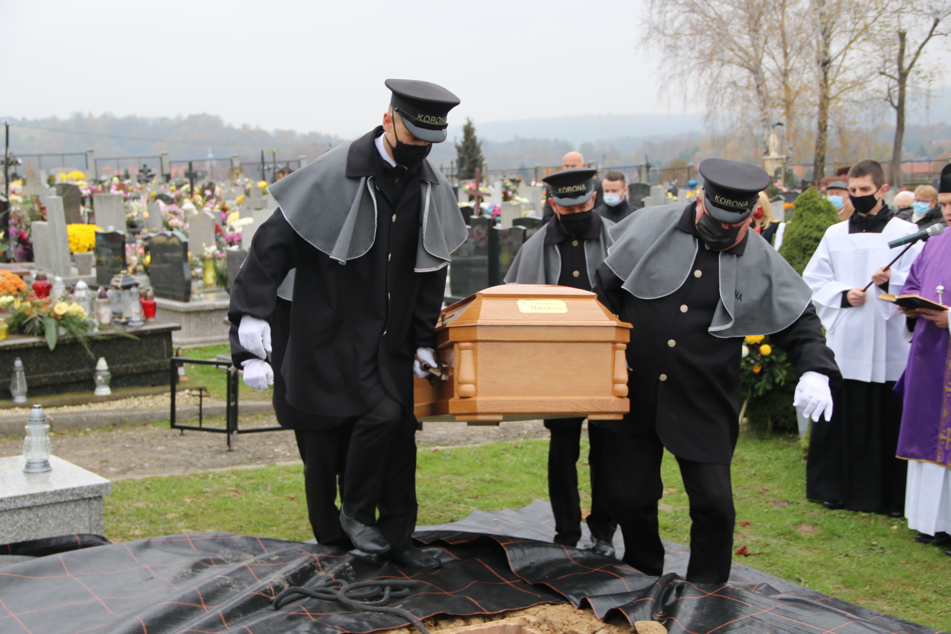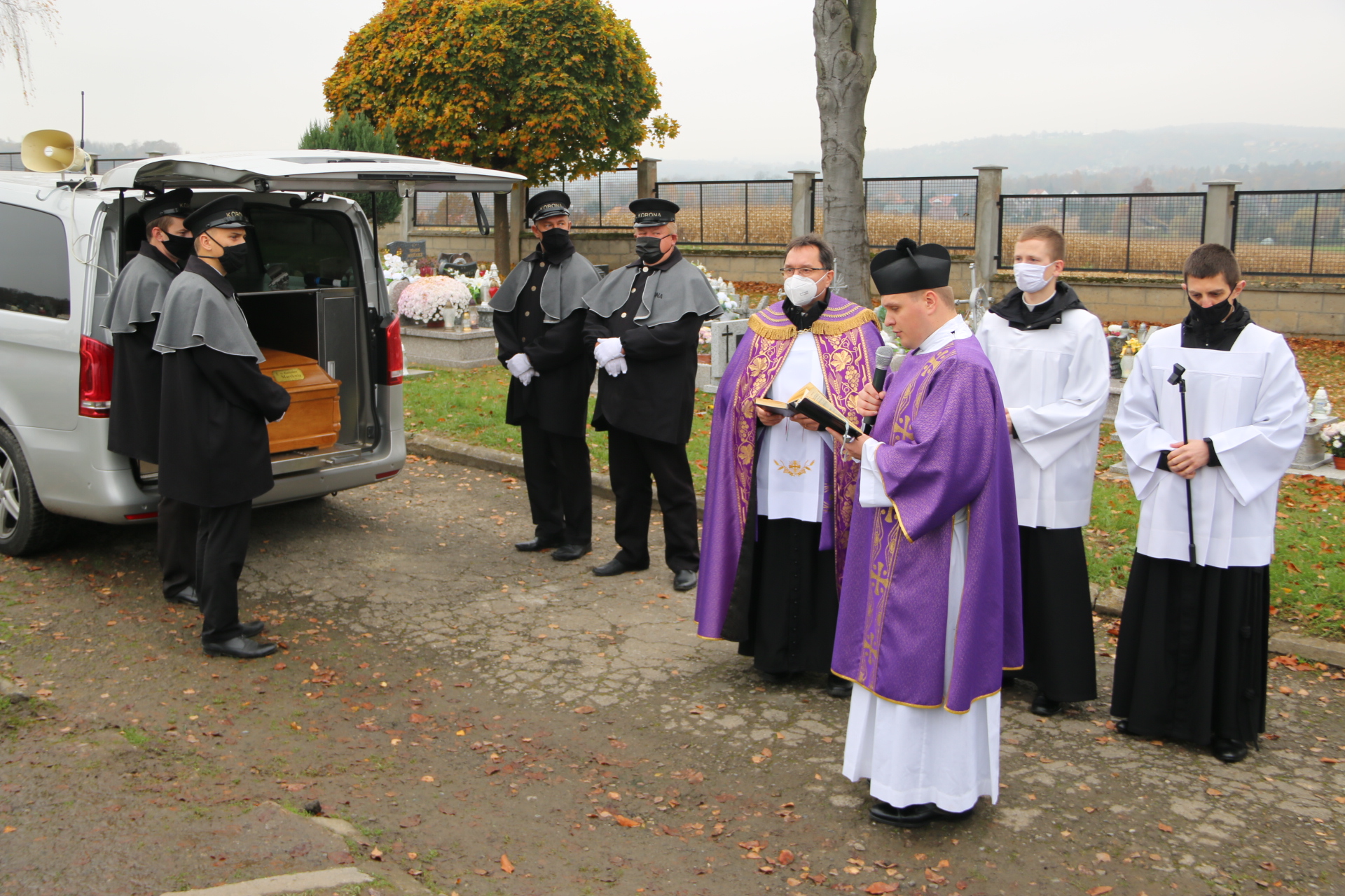 Tym razem po Mszy św. pogrzebowej, kondukt żałobny nie szedł na cmentarz, a ostatnia część obrzędów pożegnania rozpoczęła się przy bramie cmentarnej. Modlitwy na cmentarzu prowadził ks. Bieszczad, a zakończył je wspólny śpiew „In te Cor Jesu”.