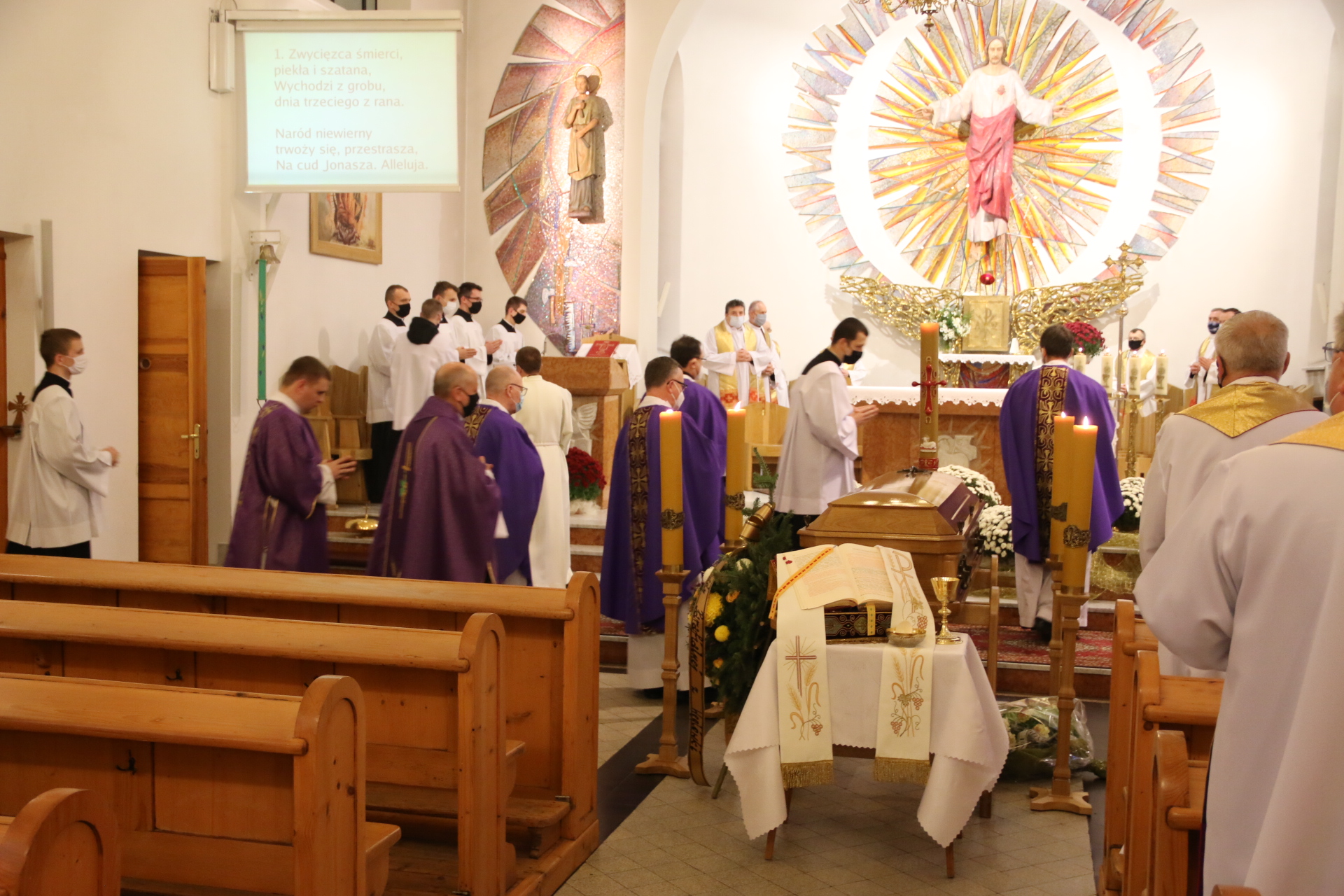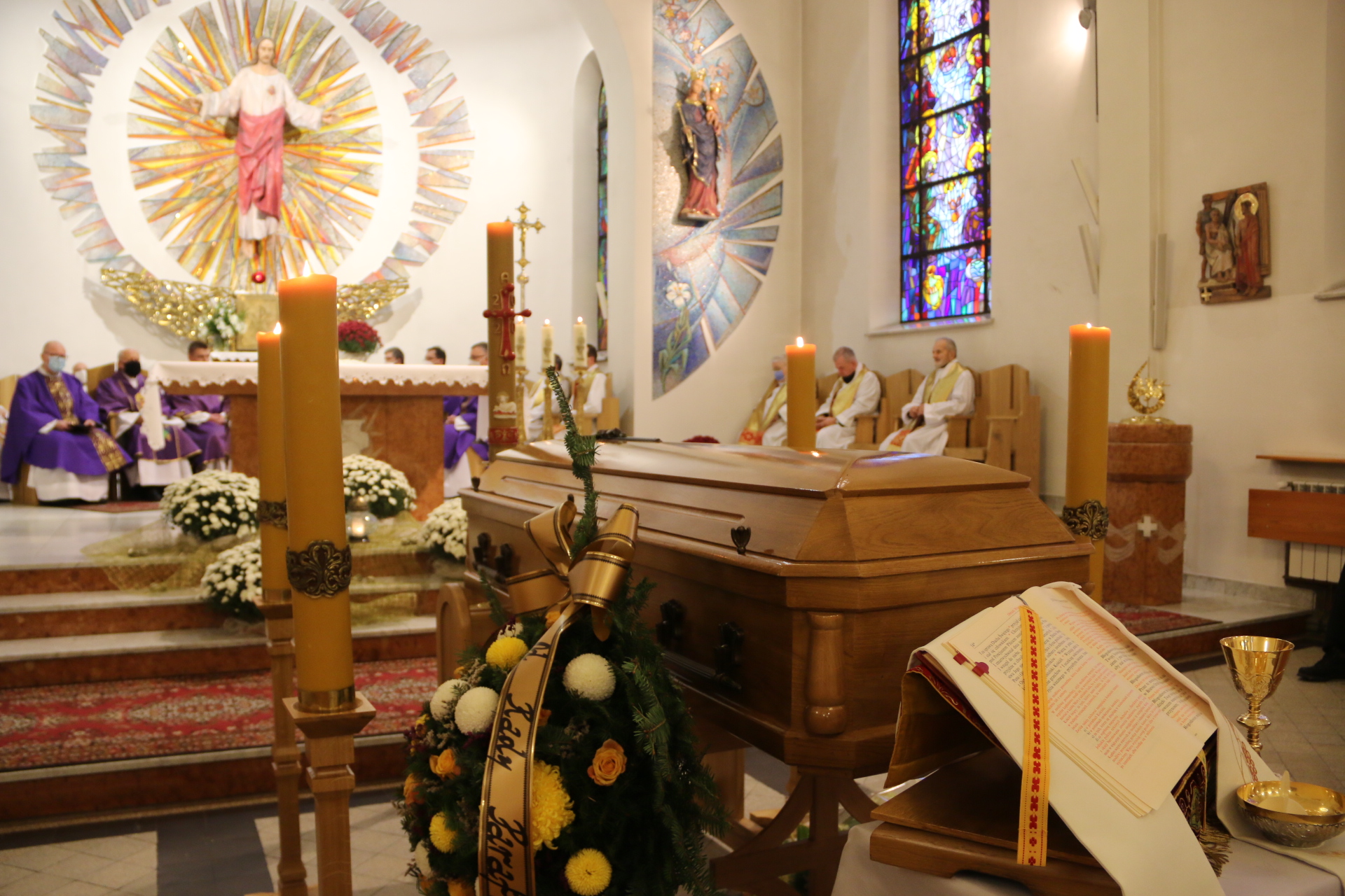 Mszy św. pogrzebowej w stadnickim kościele przewodniczył w gronie kilkunastu koncelebransów prowincjał ks. Wiesław Święch SCJ. Swego kolegę przyjechał pożegnać także ks. Józef Hojnowski, emerytowany proboszcz parafii w Górce Kościelnickiej, pochodzący z Jadownik. Z powodu pandemii w pogrzebie wzięła udział ograniczona ilość osób.