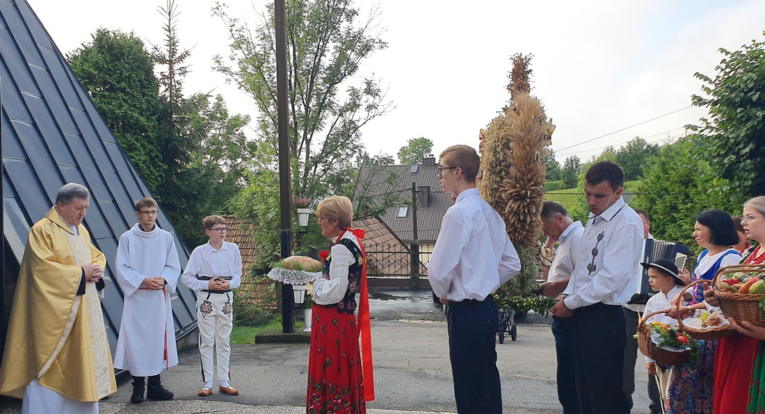 „Nasz Rodak nauczał, by nie odrzucać to, co łączy ludzi większych czy mniejszych społeczności wiejskich. Bo wieś zawsze była swego rodzaju rodziną i silna wiarą. I dopóki taka była, dopóty polska wieś była sobą, ubogacając Ojczyznę nie tylko żywnością, ale także tą kulturą, która trwa wciąż, a przeniesiona do miast nie przestaje zachwycać. Urzeka swoim pięknem, szczerością i prostotą” – podsumował kaznodzieja, który następnie pobłogosławił okazały wieniec żniwny, chleb i przyniesione przez mieszkańców os. Kiece koszyki pełne warzyw, owoców i innych produktów.