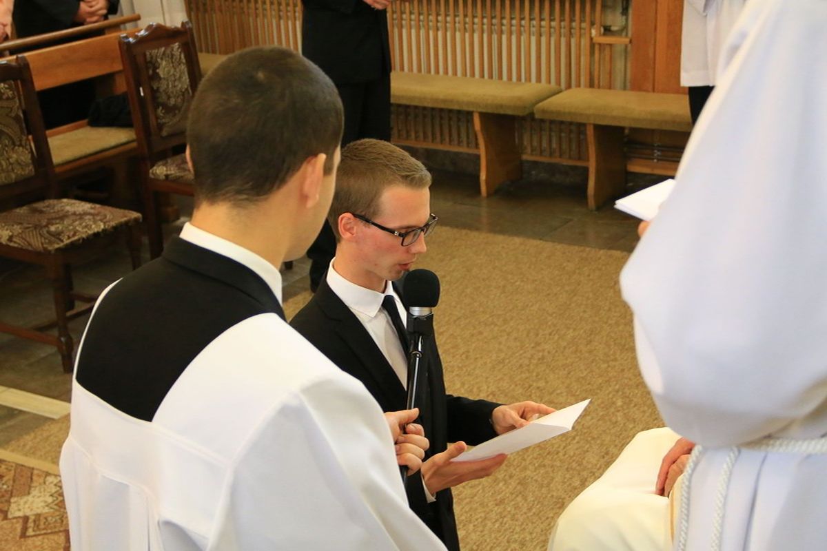 Panie, Ty natchnąłeś tych naszych współbraci do powzięcia postanowienia naśladowania Chrystusa w stanie zakonnym. Spraw, aby osiągnęli cel rozpoczętej drogi i złożyli Ci całkowitą ofiarę ze swojego życia.
