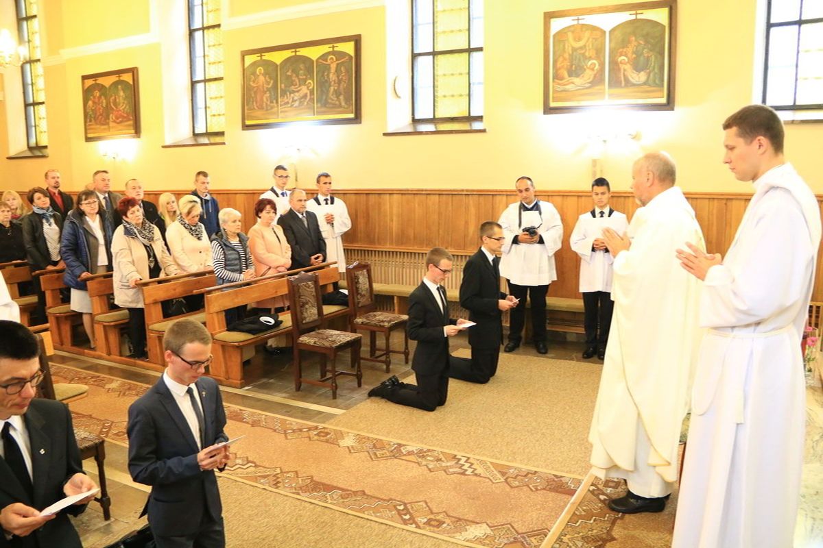 Oczy całej prowincji zwróciły się dzisiaj w stronę Stopnicy, gdzie czterech nowicjuszy złożyło swoją pierwszą profesję zakonną. Adam Maj, Karol Szlezinger, Paweł Szlezinger i Szymon Włodarczyk w sobotę 23 września 2017 r. wyrazili wolę naśladowania Chrystusa ubogiego, czystego i posłusznego składając zakonne śluby. Otoczeni modlitwą licznie przybyłych współbraci oraz najbliższej rodziny uczynili ważny krok na drodze formacji zakonnej.