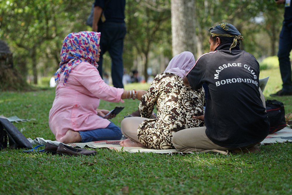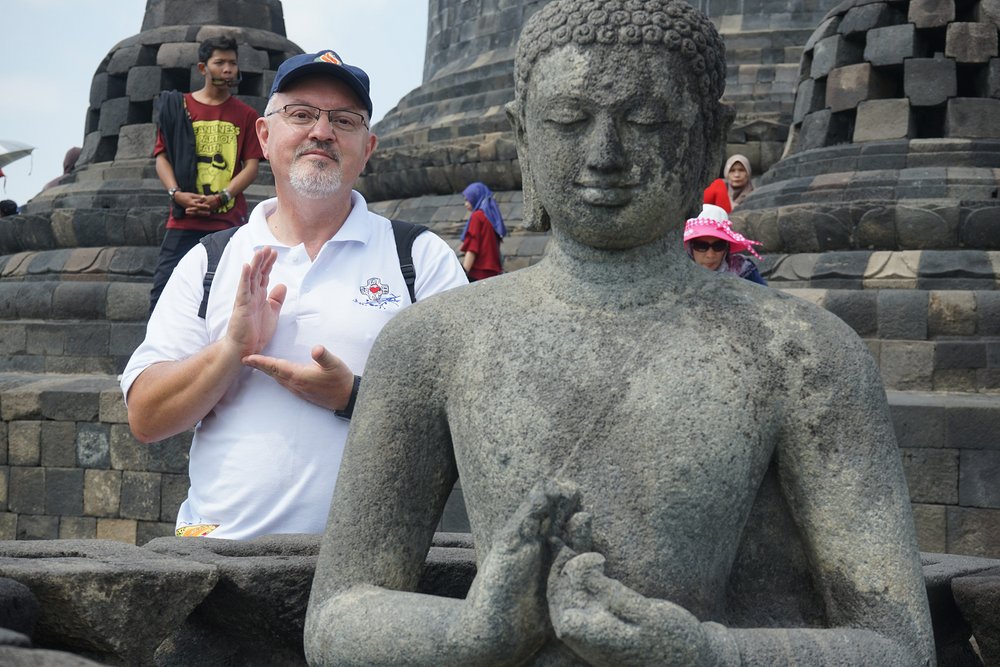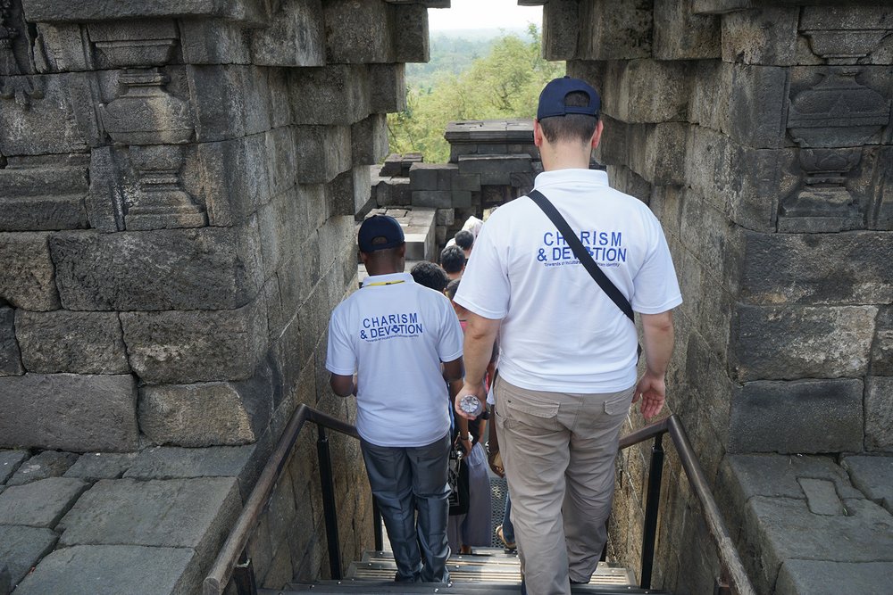 W towarzystwie dwóch przewodników uczestnicy zwiedzili świątynię Borobudur na szczycie. Świątynia Borobudur jest największą na świecie starożytną świątynią buddyjską, zbudowaną w IX wieku. Przewodnicy poprowadzili dwie grupy do góry, wyjaśniając drogę jaką podążał Budda: od ludzkich namiętności do nirwany (stan wewnętrznego pokoju i zjednoczenia z boską ideą).
