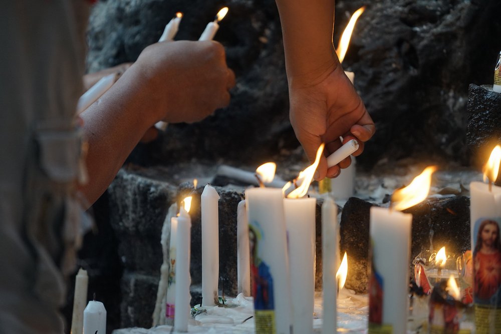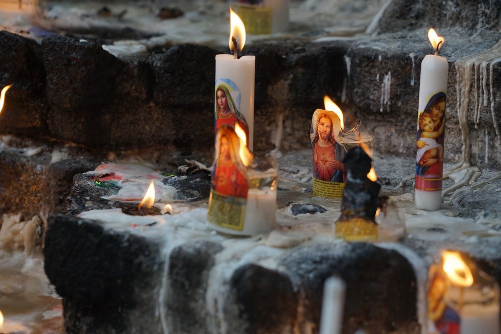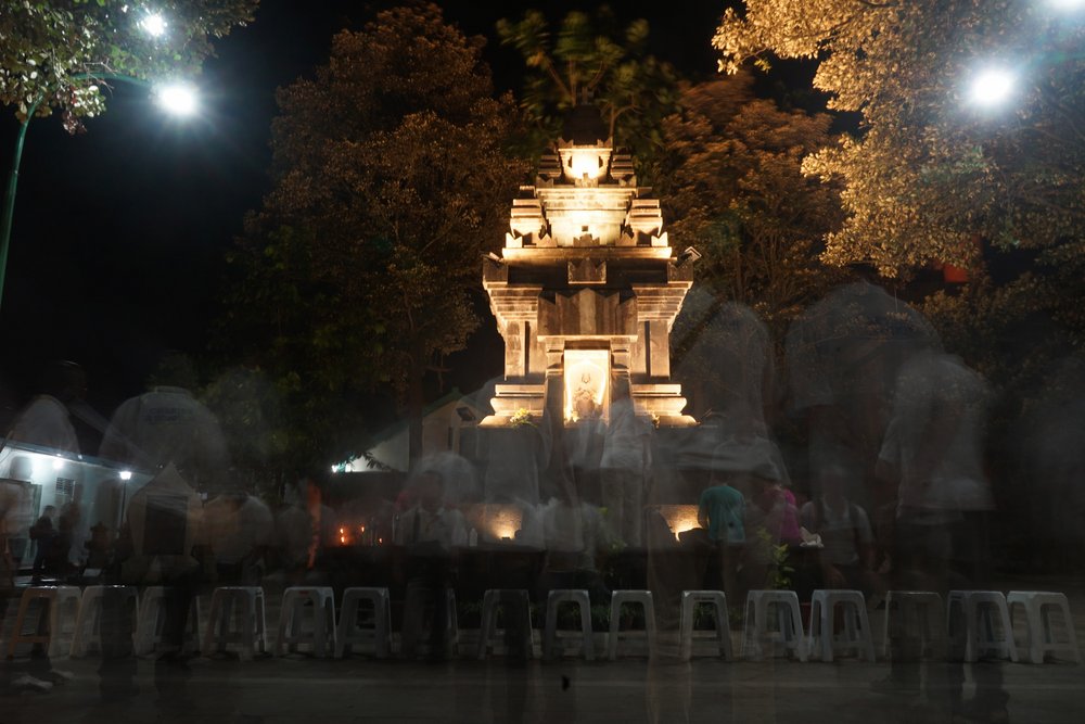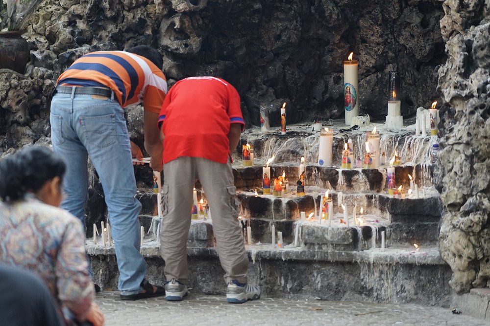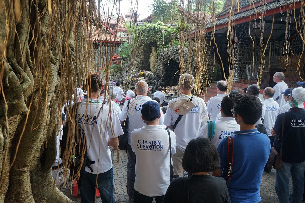Przybywając do jaskini Maryi w Sendangsono uczestnicy modlili się przez wstawiennictwo Maryi Królowej w ponad 15 językach. Potem niektórzy obmyli ręce i twarz wodą ze źródła w grocie, zgodnie z tradycją zapożyczoną ze świata muzułmańskiego.