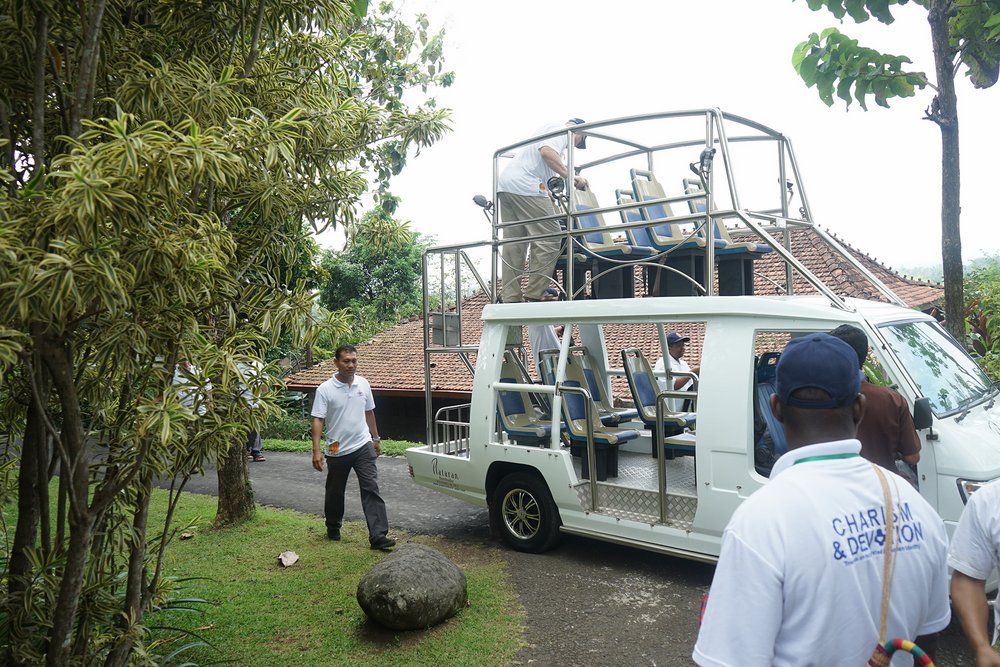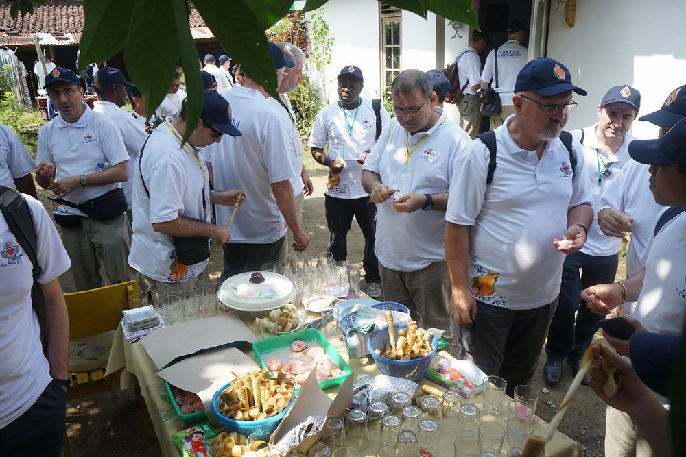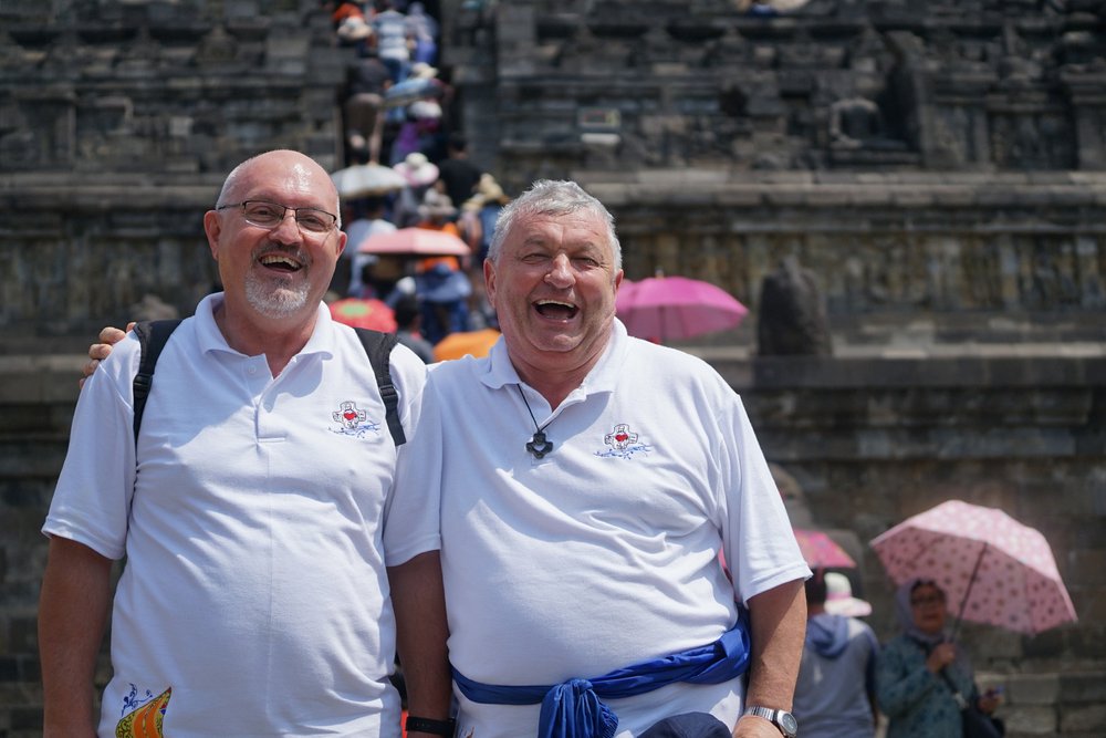 Podróż rozpoczęła się o 9:00 w dwóch autobusach, podzielonych według grup językowych. Minęło półtorej godziny nim uczestnicy z Domu rekolekcyjnego Syantikara dotarli do Świątyni Borobudur. Przed wejściem do świątyni, sercanie odwiedzili rodzinę jednego z indonezyjskich współbraci. Jego rodzina zaoferowała napoje i lokalne specjały.