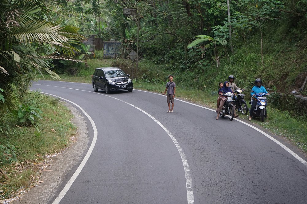 Następnie udano się w godziną podróż do Groty Maryi w Sendangsono, położonej w Banjaroyo Village. Aby dostać się do jaskini Sendangsono, uczestnicy musieli być transportowani mniejszymi samochodami, z powodu wąskiej krętej drogi.