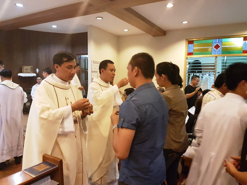 Dzień po przyjęciu święceń neoprezbiterzy ks. Dang Van Nguyen SCJ i ks. Luong Van Nguyen SCJ odprawili swoją pierwszą, dziękczynną Mszę świętą dla wspólnoty formacyjnej z Dehon House. Mszy przewodniczył ks. Dang, a ks. Luong wygłosił homilię, a na zakończenie Eucharystii skierował także słowa podziękowania. Po Mszy udzielili każdemu z uczestników indywidualnego prymicyjnego błogosławieństwa.