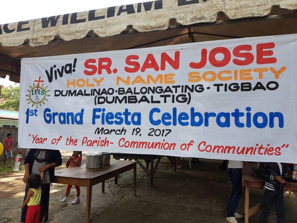 19 marca 2017 r. w uroczystość św. Józefa, około 800 mężczyzn, członków Towarzystwa Imienia Jezus, nie licząc ich żon i dzieci, wzięło udział w pierwszym wielkim święcie swego Towarzysta (”1st Grand Fiesta Celebration”). Uroczystość odbyła się w parafii pw. św. Izydora w Dumalinao, Zamboanga del Sur (Filipiny). Świętowanie rozpoczęło się od Mszy świętej, której przewodniczył ks. Lukas Hadi Siswo Sasmito SCJ a w koncelebrze znaleźli się ks. Franciszek Pupkowski SCJ (przełożony Regionu), ks. Joseph C. Butlig SCJ (sekretarz Regionu), ks. Donald Longno SCJ (radny regionalny), ks. Laurentius Suwanto SCJ (wychowawca kleryków), ks. Robertus Sutopo SCJ (wiceproboszcz w Balongating) i ks. Joseph Muego SCJ (wiceproboszcz w Tigbao). Po Mszy miała miejsce część kulturalna przygotowana przez uczestników.