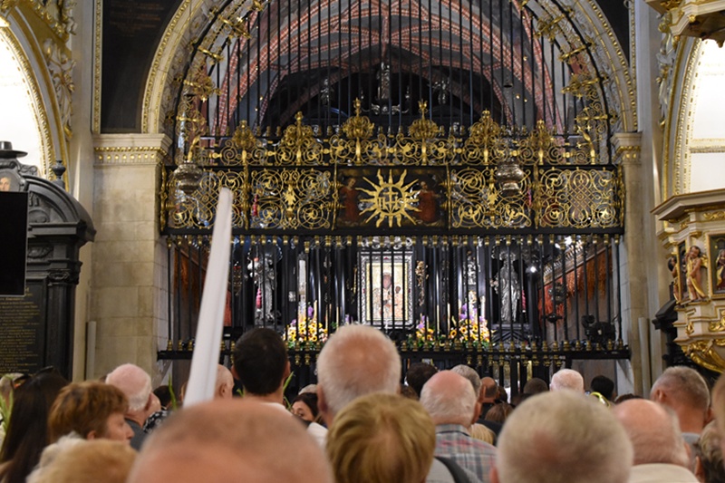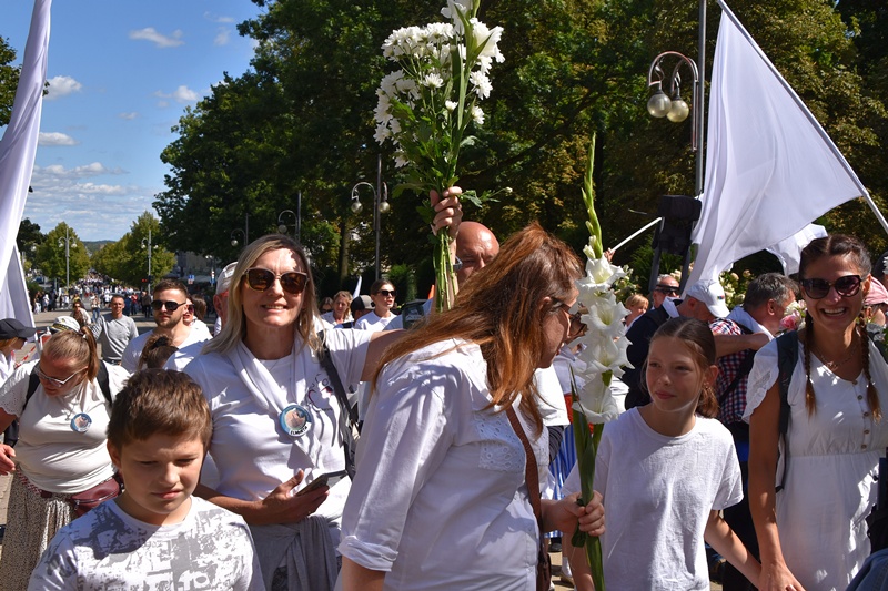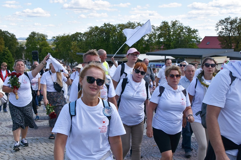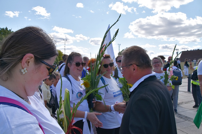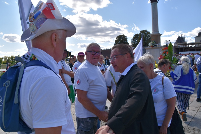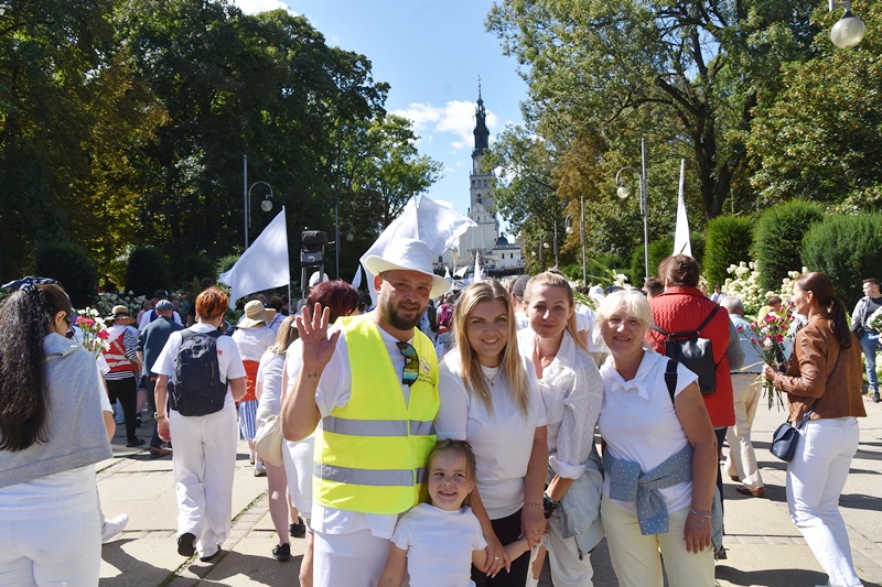 Jasna Góra. Upragnione miejsce każdego pielgrzyma. Na Jasnogórskich Błoniach pielgrzymkę witał kard. Grzegorz Ryś i bp Piotr Kleszcz. 212 pielgrzymów, w tym 14 Honorowych Dawców Krwi przy Elektrowni Bełchatów, aż 52 pielgrzymów, którzy przybyli na Jasną Górę pierwszy raz i 17 duchowych pielgrzymów. Najstarszy pielgrzym to brat Henryk (73lata), najmłodsi to: Jakub (8 miesięcy) i Mikołaj (roczek). Brat Marian na pielgrzymce był 56 razy, a siostra Maria 54.