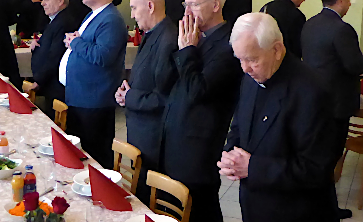 Przenosimy się z kamerą do refektarza domu płaszowskiego. Refektarz odświętnie przystrojony nabrał specyficznego, uroczystego nastroju, wypełniony po brzegi. Ledwie pomieścił zgromadzonych licznie domowników i gości. W czasie obiadu nie brakło tradycyjnych przemówień. Programowe przemówienie wygłosił nowy prowincjał ks. Romuald Skowronek SCJ. Nie brakło w przemówieniu nawiązań do przeszłości, podkreślenia wdzięczności wobec tych, którzy odeszli. I ta część uroczystości w jadalni napawała optymizmem, bo nie tylko obok siebie była twarz koło twarzy, talerz koło talerza, lecz przede wszystkim: serce koło serca.