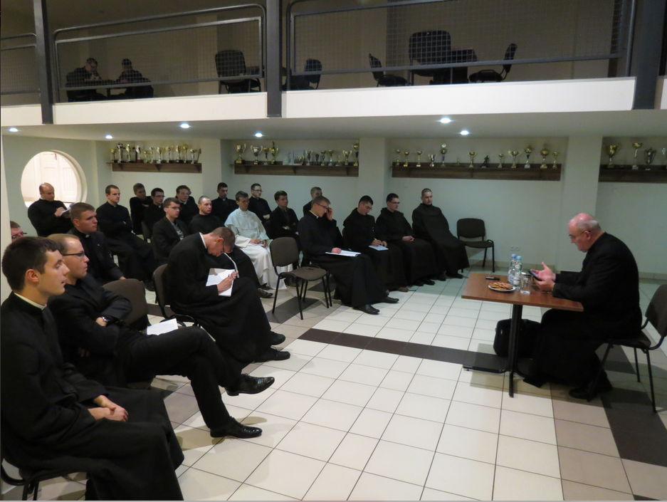 Spotkanie rozpoczęło się od wspólnej celebracji Nieszporów w kaplicy seminaryjnej. Następnie wszyscy przeszli do rozmównicy, gdzie najpierw wysłuchali prelekcji ks. Stanisława, a później mieli możliwość zadania nurtujących pytań.