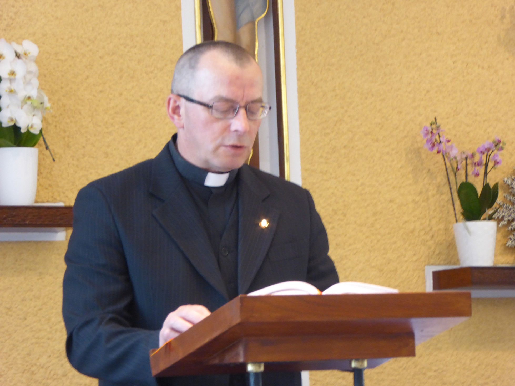 Po Mszy św. Solenizant podziękował za obecność i modlitwę życząc wszystkim błogosławieństwa Serca Bożego, po czym była okazja do życzeń wspólnych i osobistych. Ks. Knopik w życzeniach jeszcze raz odniósł się do wysiłku budowania świątyni. Podkreślił tę cechę księdza Prowincjała bycia „normalnym” współbratem zajmującym się najzwyklej codziennymi i prostymi zajęciami jak sprzątanie czy wyrzucanie śmieci. Czym daje wszystkim dobry przykład. W swoich życzeniach użył również słowa św. Jana Pawła II o kapłaństwie: „Bardzo ważne, abyśmy my kapłani szczerze i wielkodusznie odpowiedzieli na powołanie do świętości, które bóg kieruje do wszystkich ochrzczonych. Droga do świętości wiedzie przede wszystkim przez modlitwę i nic nie zdoła jej zastąpić. Przebywając z Panem, stajemy się Jego przyjaciółmi, nasze spojrzenie przemienia się stopniowo w Jego spojrzenie, nasze serce upodabnia się do Jego Serca. (…) Kluczem do tajemnicy naszego kapłaństwa jest bez wątpienia Eucharystia. Dlatego odprawianie Mszy św. musi być dla każdego z nas centrum całego życia i najważniejszą chwilą każdego dnia.”