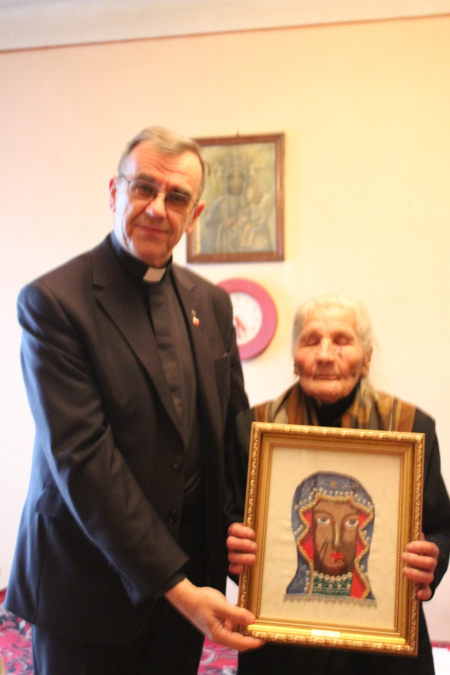 Ks. Kapelan przybył do naszej parafii, aby w imieniu Pana Prezydenta złożyć życzenia naszej parafiance Pani Władysławie Zięba, która 28 marca 2020 r. obchodziła 106 rocznicę urodzin. Z tej okazji przekazał również Pani Władysławie obraz Matki Bożej Częstochowskiej.