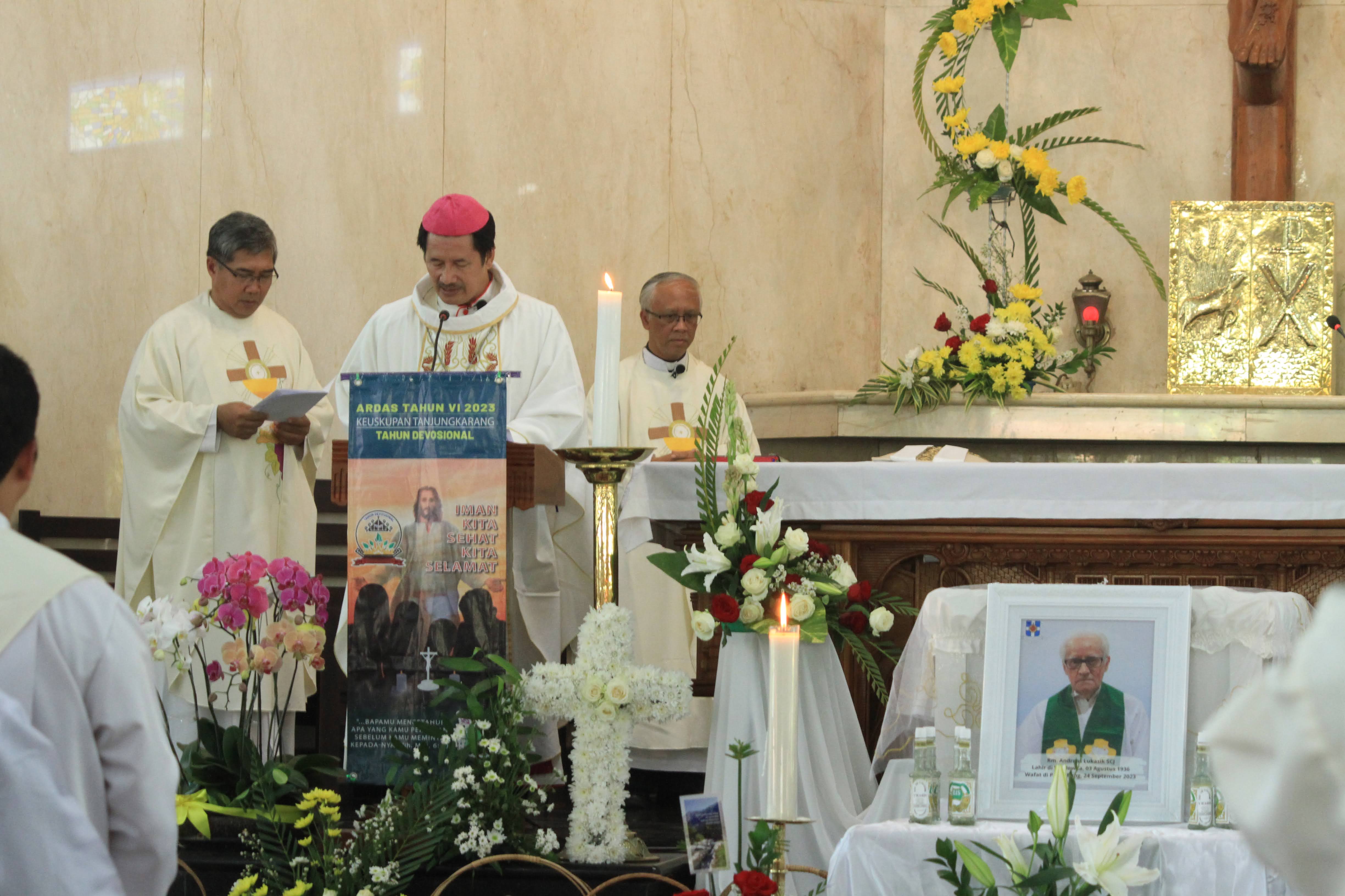 W poniedziałek 25 września o godz. 19.00 w Palembang w intencji zmarłego ks. Andrzeja Łukasika SCJ została odprawiona Msza św. żałobna, której przewodniczył biskup Palembang. We wtorek ciało śp. ks. Andrzeja zostało przewiezione do Pringsewu w prowincji Lampung, gdzie spędził on prawie całe swoje życie misyjne. Natomiast w środę 27 września o godz. 10.00 czasu indonezyjskiego Mszy św. pogrzebowej przewodniczył biskup Tanjungkarang Lampung.