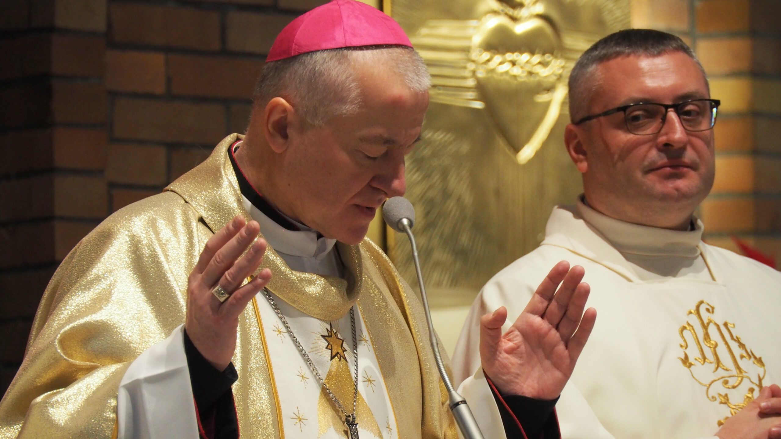 Biskup podkreślił, że witraż powstaje z kawałków – z fragmentów i pęknięć – a mimo to tworzy spójną całość. – Jeśli pozwolimy Panu Bogu być witrażystą, to On będzie nas składał – mówił, wskazując, że piękno nie rodzi się z idealnej gładkości, lecz z tego, co potłuczone, oddane w ręce Boga. Jak zaznaczył, człowiek czerpie pełnię z Chrystusa, który sam został „rozbity” na krzyżu, a jednak właśnie z tej ofiary rodzi się nowe życie.