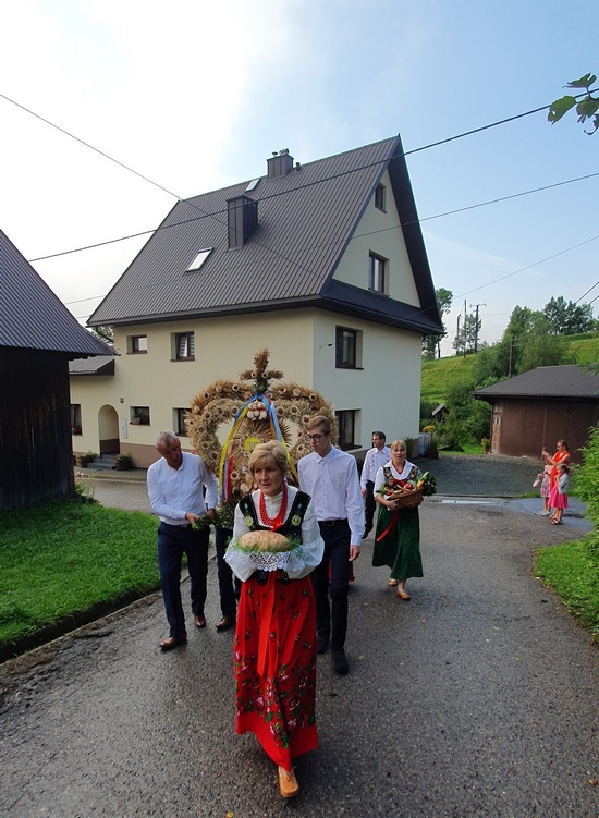Do swej świątyni przybyli w barwnym korowodzie niosąc wieniec żniwny, śpiewając pieśni maryjne, a przygrywał im na akordeonie organista. Przed kościołem wszystkich przywitał duszpasterz, który zaprosił do wspólnej modlitwy podczas Eucharystii. Potem w homilii przypomniał, że Dożynki są czasem dziękczynienia za wszystko, co podarowała ziemia, a co Stwórca pobłogosławił.