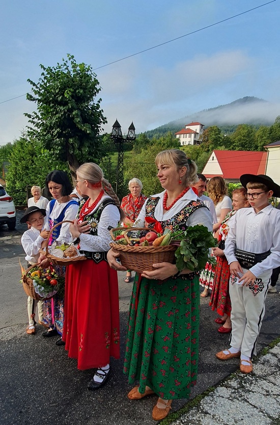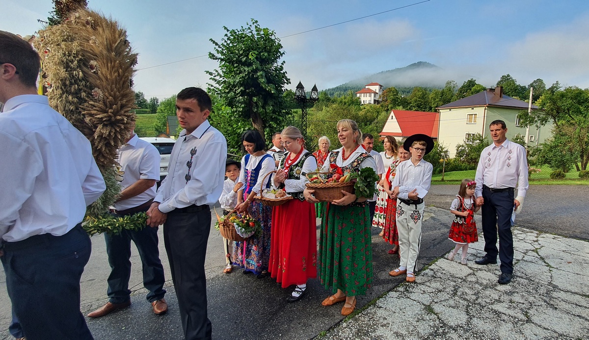 „Nasz Rodak nauczał, by nie odrzucać to, co łączy ludzi większych czy mniejszych społeczności wiejskich. Bo wieś zawsze była swego rodzaju rodziną i silna wiarą. I dopóki taka była, dopóty polska wieś była sobą, ubogacając Ojczyznę nie tylko żywnością, ale także tą kulturą, która trwa wciąż, a przeniesiona do miast nie przestaje zachwycać. Urzeka swoim pięknem, szczerością i prostotą” – podsumował kaznodzieja, który następnie pobłogosławił okazały wieniec żniwny, chleb i przyniesione przez mieszkańców os. Kiece koszyki pełne warzyw, owoców i innych produktów.