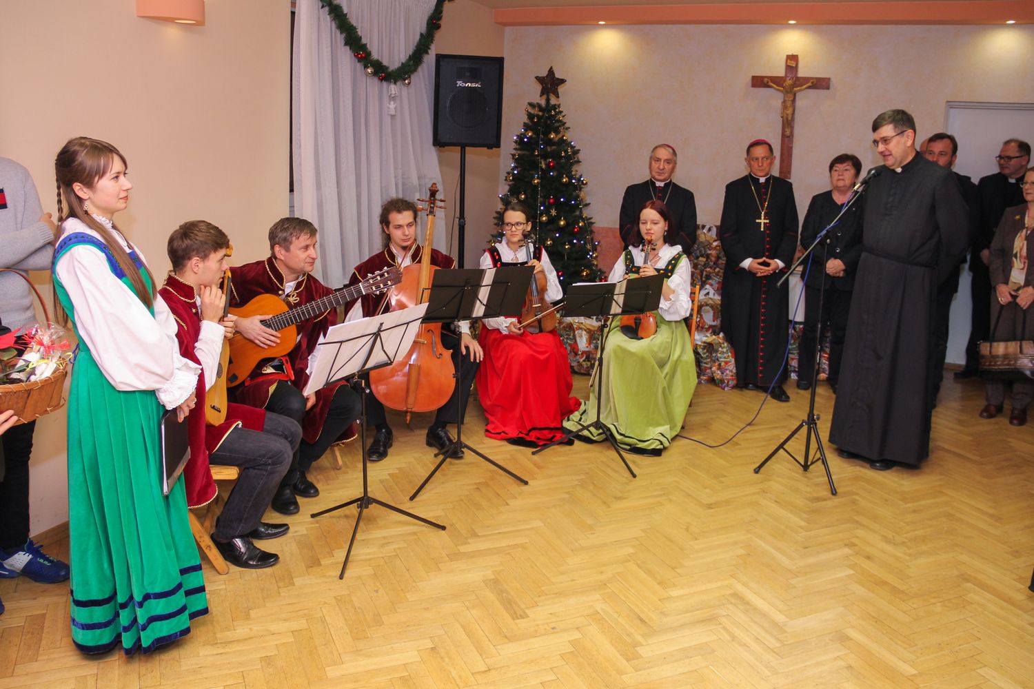 Druga część spotkania miała miejsce w auli i rozpoczęła się od występu Zespołu Muzyki Dawnej „La Folia”, pod kierownictwem pana Piotra Gawryjołka. Następnie głos zabrali przedstawiciele studentów, którzy podziękowali wszystkim przybyłym gościom za obecność i modlitwę. Szczególne wyrazy wdzięczności stypendyści skierowali pod adresem pani prezes Ewy Bednarkiewicz i przybyłych gości z Warszawy. Podziękowali za wspaniałe paczki, przeznaczone dla ubogich rodzin oraz za „Przewodnik po Rzymie”. Ten ostatni prezent został zinterpretowany przez stypendystów, jako zapowiedź zbliżającej się pielgrzymki do Rzymu.
