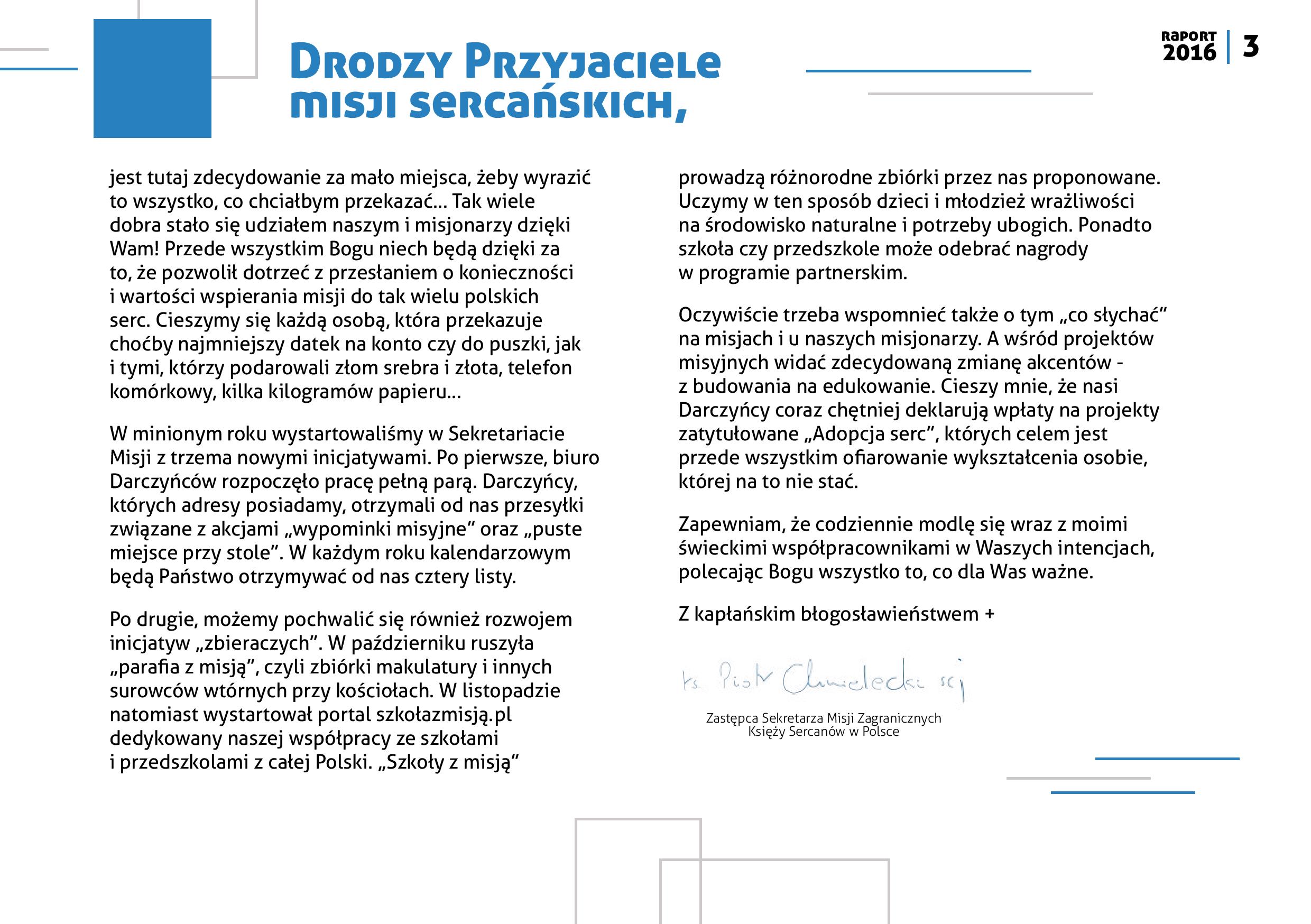 Oczywiście trzeba wspomnieć także o tym „co słychać” na misjach i u naszych misjonarzy. A wśród projektów misyjnych widać zdecydowaną zmianę akcentów - z budowania na edukowanie. Cieszy mnie, że nasi Darczyńcy coraz chętniej deklarują wpłaty na projekty