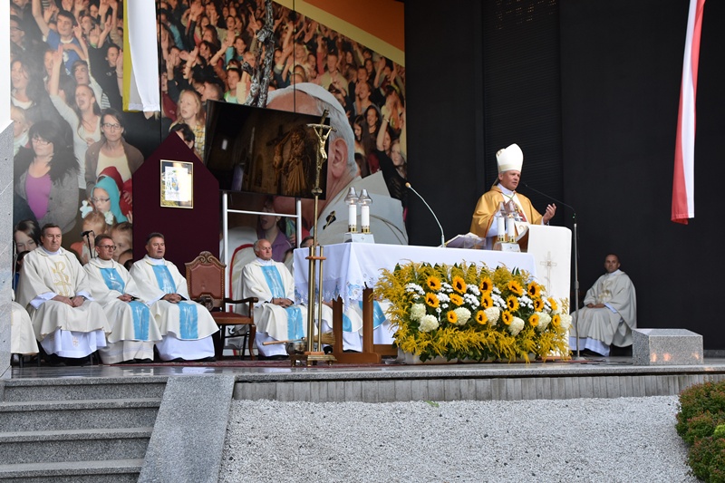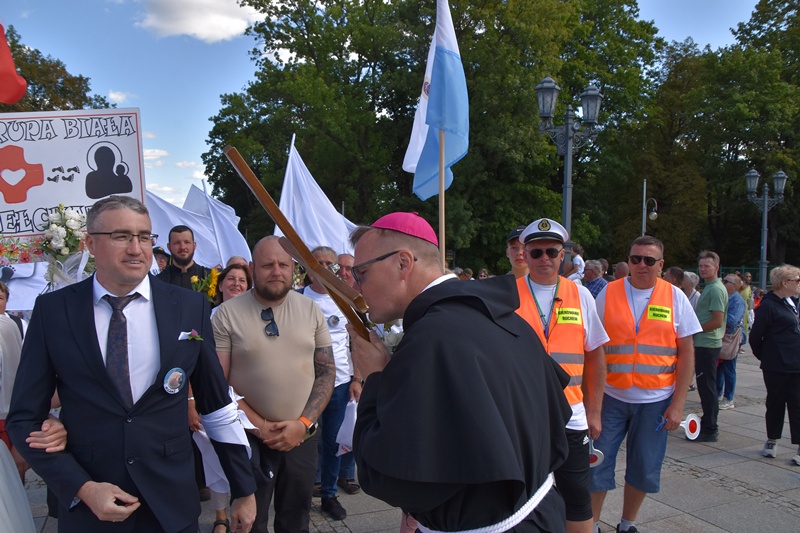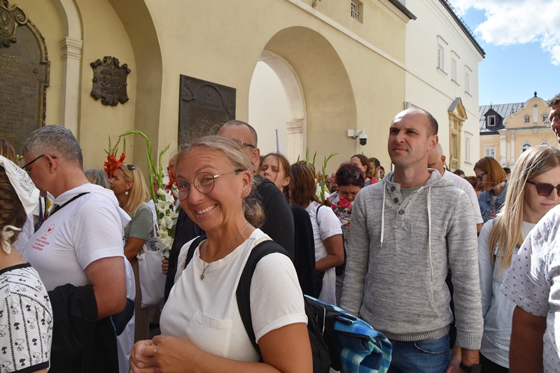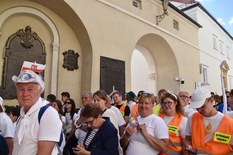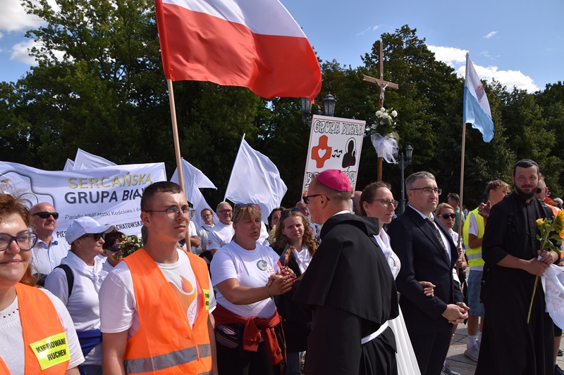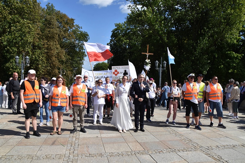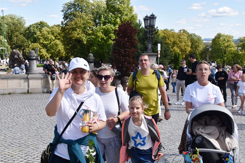 Jasna Góra. Upragnione miejsce każdego pielgrzyma. Na Jasnogórskich Błoniach pielgrzymkę witał kard. Grzegorz Ryś i bp Piotr Kleszcz. 212 pielgrzymów, w tym 14 Honorowych Dawców Krwi przy Elektrowni Bełchatów, aż 52 pielgrzymów, którzy przybyli na Jasną Górę pierwszy raz i 17 duchowych pielgrzymów. Najstarszy pielgrzym to brat Henryk (73lata), najmłodsi to: Jakub (8 miesięcy) i Mikołaj (roczek). Brat Marian na pielgrzymce był 56 razy, a siostra Maria 54.