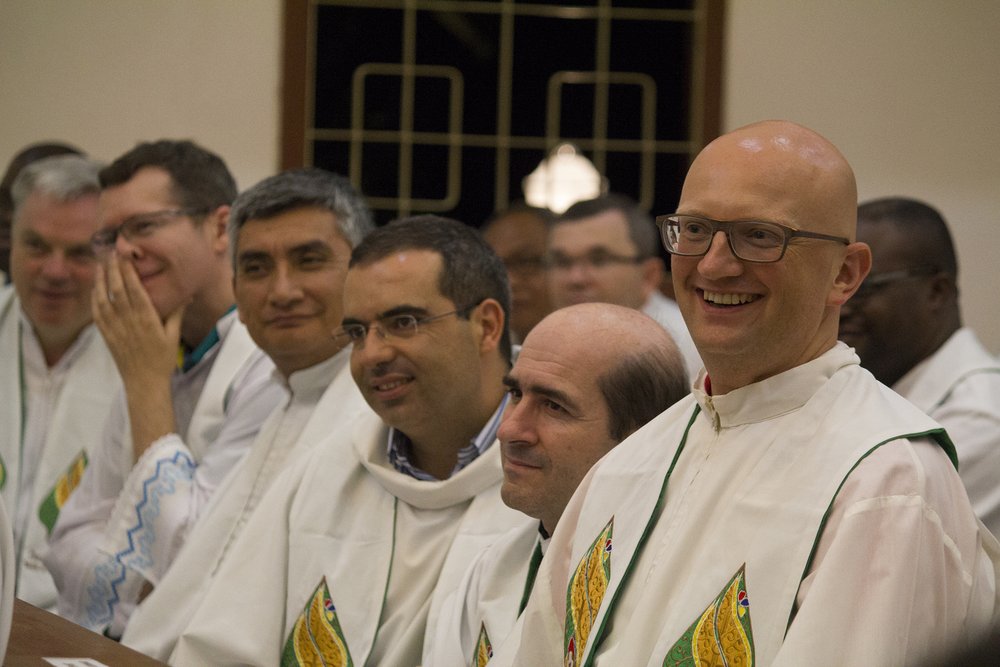 Przed wyjazdem do scholastykatu sercańskiego, gdzie miała zostać odprawiona Msza święta, wszyscy zgromadzili się na prezentacji uczestników seminarium, którzy przybyli ze wszystkich kontynentów. O godzinie 16.oo dwoma autokarami udano się do scholastykatu.